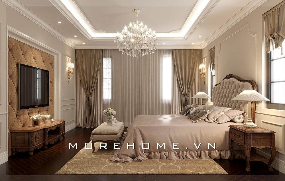 Mẫu thiết kế nội thất phòng ngủ biệt thự cao cấp phong cách tân cổ điển