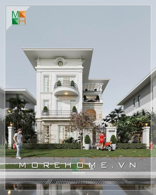 Thiết kế biệt thự đơn lập kiến trúc tân cổ điển kiểu pháp cao cấp ở Hà Nội