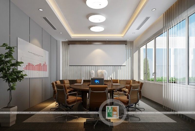 Phòng họp văn phòng được thiết kế theo phong cách hiện đại với những đồ nội thất cao cấp để tạo nên sự đẹp đẽ.